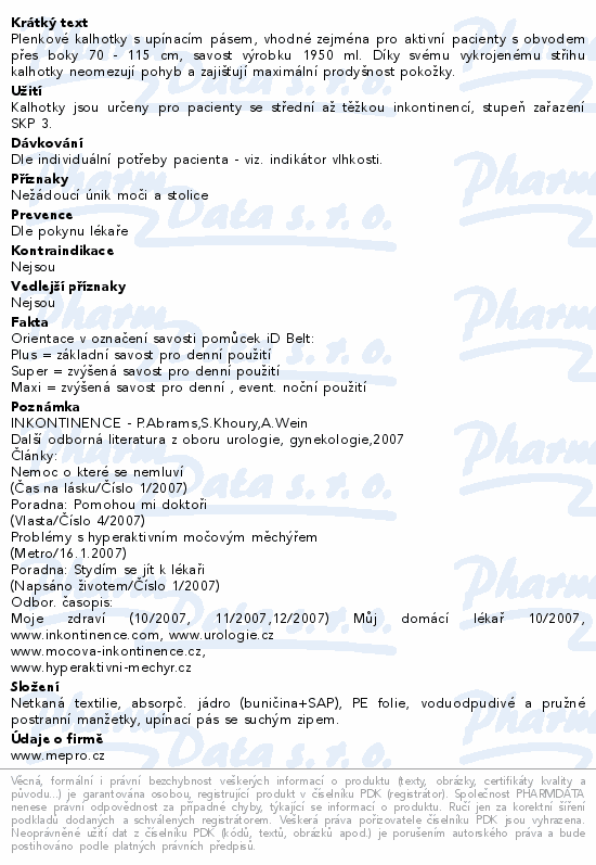 Plenkové kalhotky s upínacím pásem, vhodné zejména pro aktivní pacienty s obvodem přes boky 70 - 115 cm, savost výrobku 1950 ml. Díky svému vykrojenému střihu kalhotky neomezují pohyb a zajišťují maximální prodyšnost pokožky.