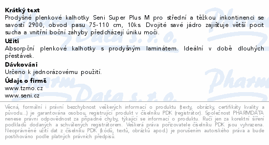 Seni Super Plus inkon.plenkové kalhotky M 10ks