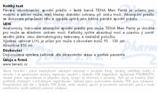 Pánské inkontinenční spodní prádlo v šedé barvě TENA Men Pants je určeno pro mobilní a aktivní muže, kteří hledají diskrétní ochranu při úniku moči. Absorpční prádlo se dokonale přizpůsobí tělu a vypadá úplně jako běžné pánské spodní prádlo.