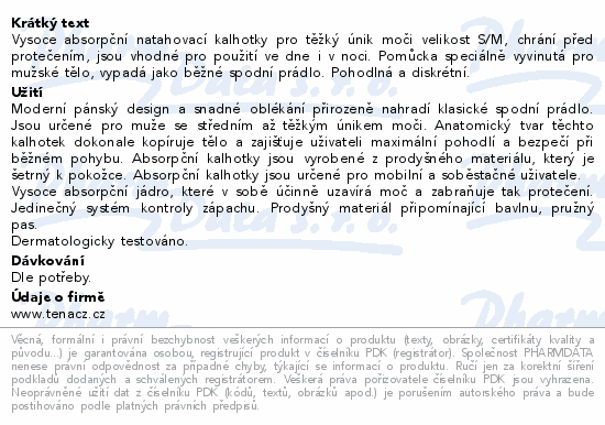Vysoce absorpční natahovací kalhotky pro těžký únik moči velikost S/M, chrání před protečením, jsou vhodné pro použití ve dne i v noci. Pomůcka speciálně vyvinutá pro mužské tělo, vypadá jako běžné spodní prádlo. Pohodlná a diskrétní.