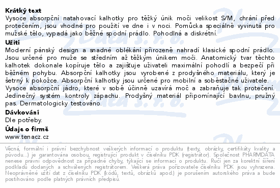 Vysoce absorpční natahovací kalhotky pro těžký únik moči velikost S/M, chrání před protečením, jsou vhodné pro použití ve dne i v noci. Pomůcka speciálně vyvinutá pro mužské tělo, vypadá jako běžné spodní prádlo. Pohodlná a diskrétní.