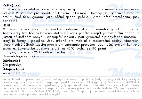 TENA Men Washab.Boxers M čer.inkon.boxer.1ks 84944
