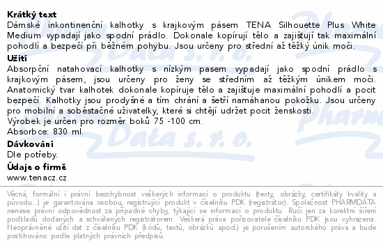 Dámské inkontinenční kalhotky s krajkovým pásem TENA Silhouette Plus White Medium vypadají jako spodní prádlo. Dokonale kopírují tělo a zajišťují tak maximální pohodlí a bezpečí při běžném pohybu. Jsou určeny pro střední až těžký únik moči.