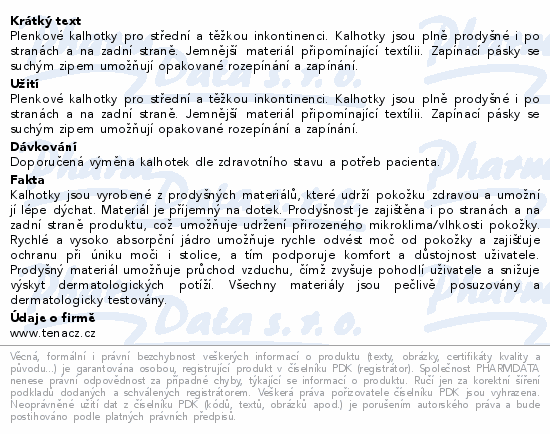 Plenkové kalhotky pro střední a těžkou inkontinenci. Kalhotky jsou plně prodyšné i po stranách a na zadní straně. Jemnější materiál připomínající textílii. Zapínací pásky se suchým zipem umožňují opakované rozepínání a zapínání.