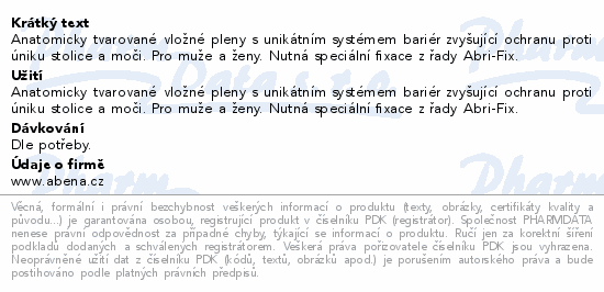 Anatomicky tvarované vložné pleny s unikátním systémem bariér zvyšující ochranu proti úniku stolice a moči. Pro muže a ženy. Nutná speciální fixace z řady Abri-Fix.