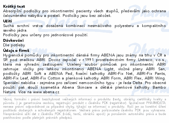 Absorpční podložky pro inkontinentní pacienty všech stupňů, především jako ochrana čalouněného nábytku a postelí. Podložky jsou bez záložek.