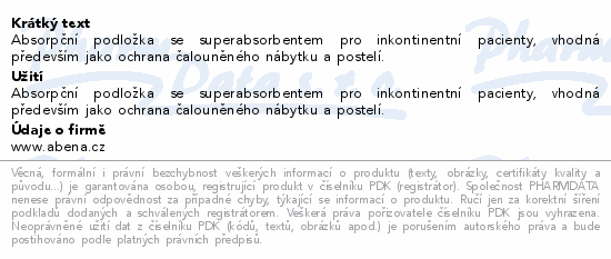 Absorpční podložka se superabsorbentem pro inkontinentní pacienty, vhodná především jako ochrana čalouněného nábytku a postelí.
