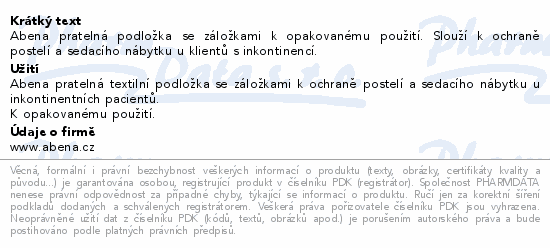 Abena pratelná podložka se záložkami k opakovanému použití. Slouží k ochraně postelí a sedacího nábytku u klientů s inkontinencí.