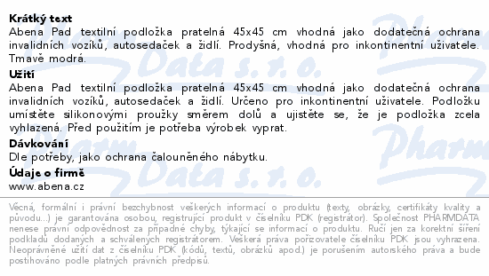 Abena Pad textilní podložka pratelná 45x45 cm vhodná jako dodatečná ochrana invalidních vozíků, autosedaček a židlí. Prodyšná, vhodná pro inkontinentní uživatele. Tmavě modrá.