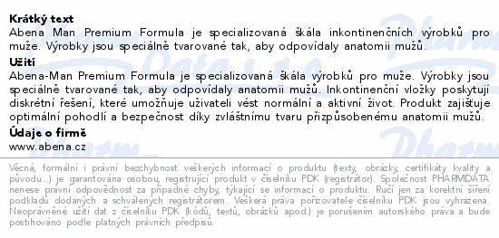 Abena Man Premium Formula je specializovaná škála inkontinenčních výrobků pro muže. Výrobky jsou speciálně tvarované tak, aby odpovídaly anatomii mužů.