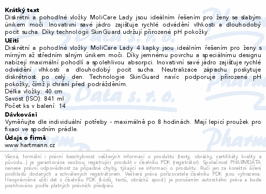 MoliCare lady inkontinenční vložky 4 kapky 14ks