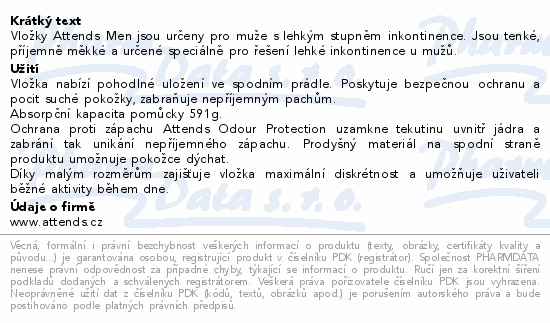 Vložky Attends Men jsou určeny pro muže s lehkým stupněm inkontinence. Jsou tenké, příjemně měkké a určené speciálně pro řešení lehké inkontinence u mužů.