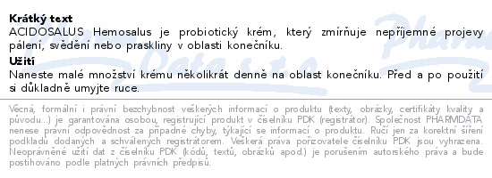 ACIDOSALUS Hemosalus je probiotický krém, který zmírňuje nepříjemné projevy pálení, svědění nebo praskliny v oblasti konečníku.