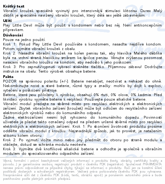 Vibrační kroužek speciálně vyvinutý pro intenzivnější stimulaci klitorisu. Durex Malý ďáblík je speciálně navržený vibrační kroužek, který dělá sex ještě zábavnějším.