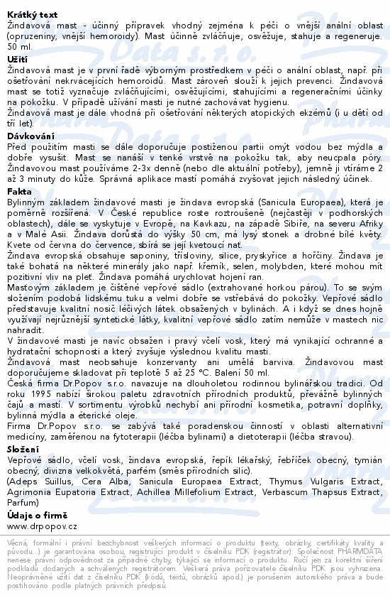 Žindavová mast - účinný přípravek vhodný zejména k péči o vnější anální oblast (opruzeniny, vnější hemoroidy). Mast účinně zvláčňuje, osvěžuje, stahuje a regeneruje. 50 ml.