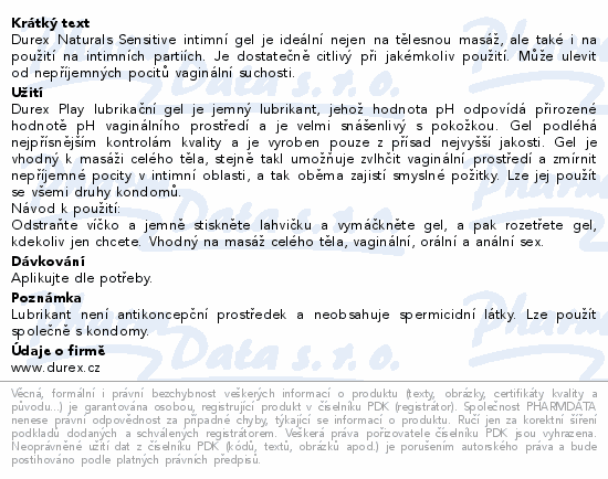 Durex Naturals Sensitive intimní gel je ideální nejen na tělesnou masáž, ale také i na použití na intimních partiích. Je dostatečně citlivý při jakémkoliv použití. Může ulevit od nepříjemných pocitů vaginální suchosti.