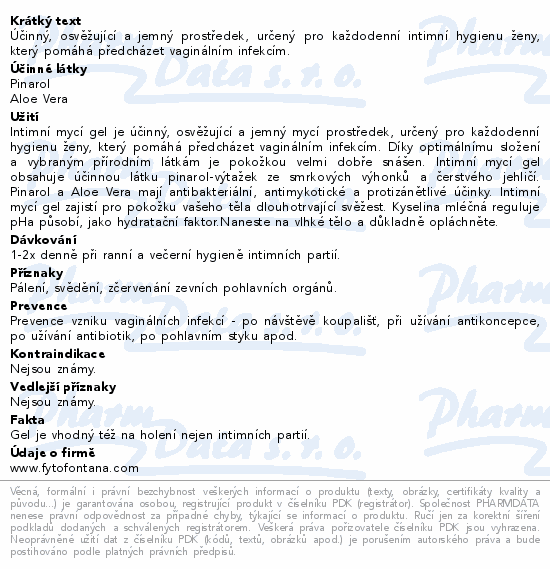 Účinný, osvěžující a jemný prostředek, určený pro každodenní intimní hygienu ženy, který pomáhá předcházet vaginálním infekcím.