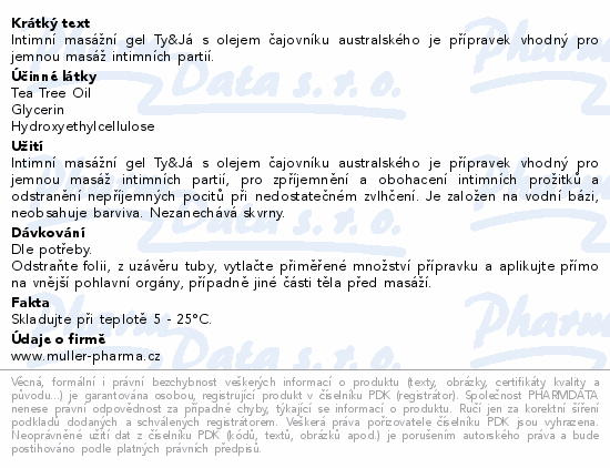 Intimní masážní gel Ty&Já s olejem čajovníku australského je přípravek vhodný pro jemnou masáž intimních partií.