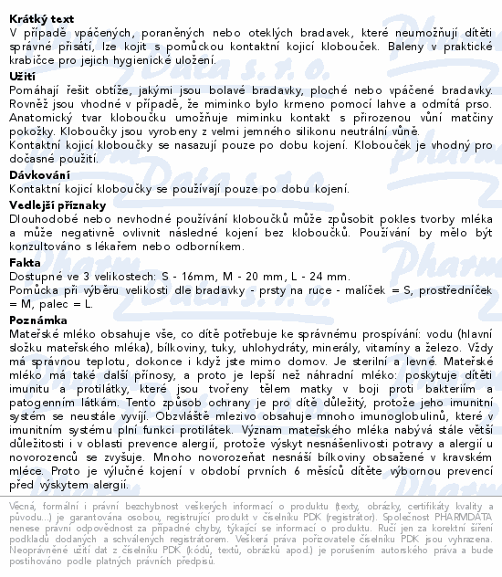 V případě vpáčených, poraněných nebo oteklých bradavek, které neumožňují dítěti správné přisátí, lze kojit s pomůckou kontaktní kojicí klobouček. Baleny v praktické krabičce pro jejich hygienické uložení.