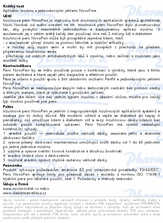 Aplikátor inzulinu s jednorázovými jehlami NovoFine.