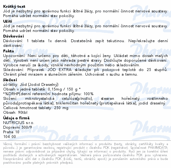 Jód je nezbytný pro správnou funkci štítné žlázy, pro normální činnost nervové soustavy. Pomáhá udržet normální stav pokožky.