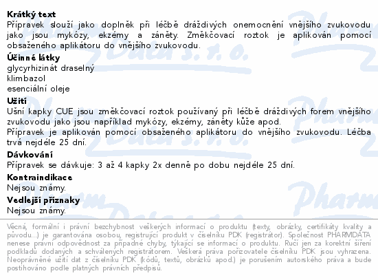 Přípravek slouží jako doplněk při léčbě dráždivých onemocnění vnějšího zvukovodu jako jsou mykózy, ekzémy a záněty. Změkčovací roztok je aplikován pomocí obsaženého aplikátoru do vnějšího zvukovodu.