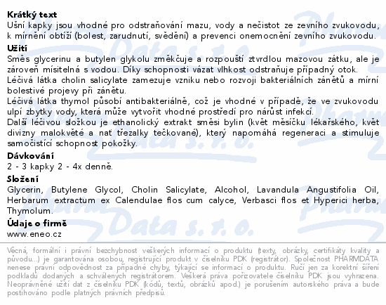 Před použitím ohřejte roztok na tělesnou teplotu např. ohřátím v dlaních. K čištění ucha přistupujte nejdříve 10 minut po aplikaci prostředku.