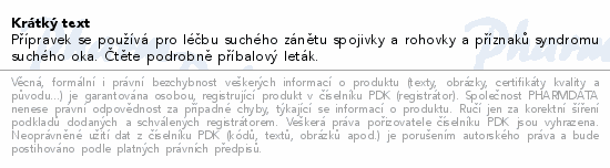 Přípravek se používá pro léčbu suchého zánětu spojivky a rohovky a příznaků syndromu suchého oka. Čtěte pozorně příbalový leták.