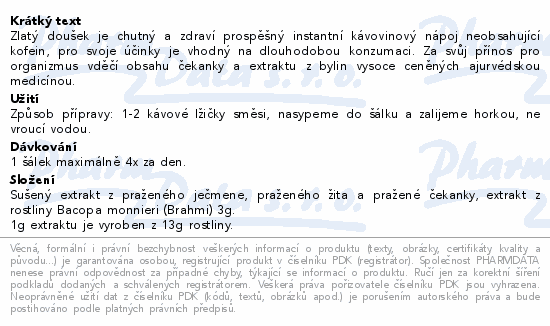 Zlatý doušek je chutný a zdraví prospěšný instantní kávovinový nápoj neobsahující kofein, pro svoje účinky je vhodný na dlouhodobou konzumaci. Za svůj přínos pro organizmus vděčí obsahu čekanky a extraktu z bylin vysoce ceněných ajurvédskou medicínou.