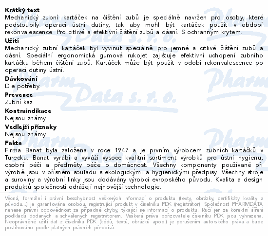 Mechanický zubní kartáček na čištění zubů je speciálně navržen pro osoby, které podstoupily operaci ústní dutiny, tak aby mohl být kartáček použit v období rekonvalescence. Pro citlivé a efektivní čištění zubů a dásní. S ochranným krytem.