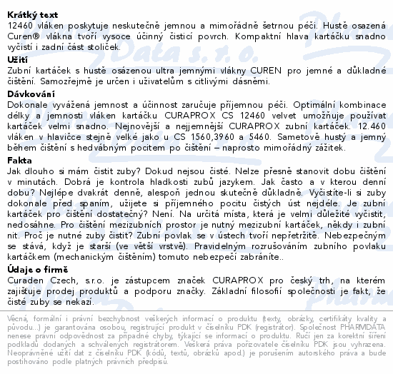 12460 vláken poskytuje neskutečně jemnou a mimořádně šetrnou péči. Hustě osazená Curen® vlákna tvoří vysoce účinný čisticí povrch. Kompaktní hlava kartáčku snadno vyčistí i zadní část stoliček.