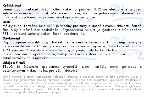 Jemný zubní kartáček 4920 Nollex vláken o průměru 0,12mm efektivně a zároveň šetrně odstraňuje zubní plak. Má oválnou hlavu, kterou se jednoduše dostanete i do hůře přístupných míst, ergonomická rukojeť má oválný tvar.