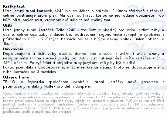 Ultra jemný zubní kartáček, 6240 Nollex vláken o průměru 0,10mm efektivně a zároveň šetrně odstraňuje zubní plak. Má oválnou hlavu, kterou se jednoduše dostanete i do hůře přístupných míst, ergonomická rukojeť má oválný tvar.