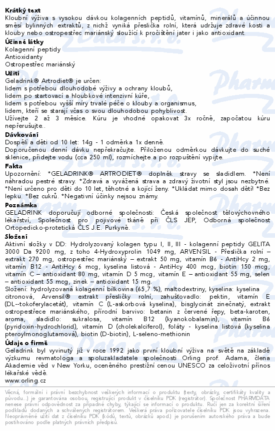 Kolagenní výživa kostí a chrupavek kloubů s antioxidanty avitamíny AntiHcy. Geladrink Atrodiet je zdrojem látek s nutričním a fyziologickým účinkem doplňujícím běžnou stravu a lze jej užívat ke speciální a obohacené výživě kostí a chrupavek kloubů.