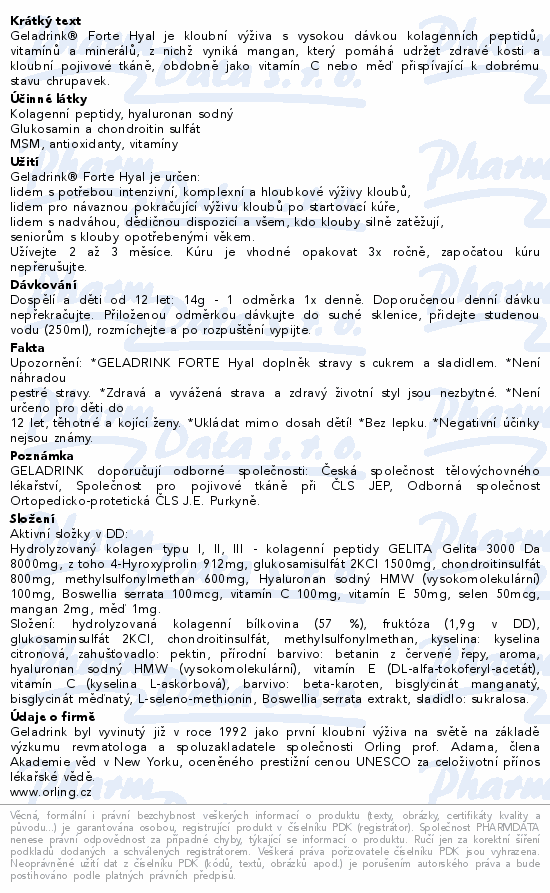 Hloubková kolagenní kloubní výživa s hyaluronanem sodným, glukosamin a chondroitin sulfáty, MSM, antioxidanty. Je zdrojem látek s nutričním a fyziologickým účinkem doplňujícím běžnou stravu a lze jej užívat ke komplexní výživě kostí a chrupavek kloubů.