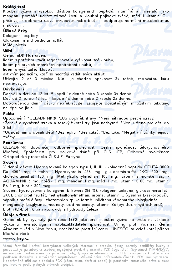 Kolagenní výživa kostí a chrupavek kloubů s organicky vázanou sírou a biotinem. Geladrink PLUS je zdrojem látek s nutričním a fyziologickým účinkem doplňujícím běžnou stravu a lze jej užívat k výživě kostí, chrupavek, kloubů, kůže a vlasů.