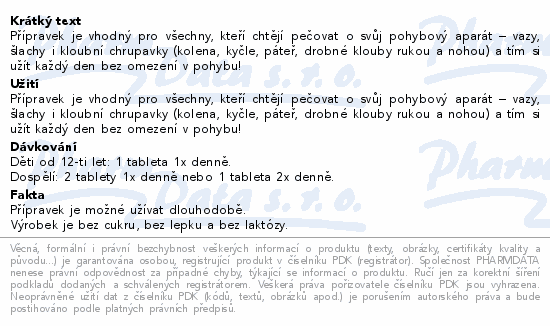 Přípravek je vhodný pro všechny, kteří chtějí pečovat o svůj pohybový aparát – vazy, šlachy i kloubní chrupavky (kolena, kyčle, páteř, drobné klouby rukou a nohou) a tím si užít každý den bez omezení v pohybu!