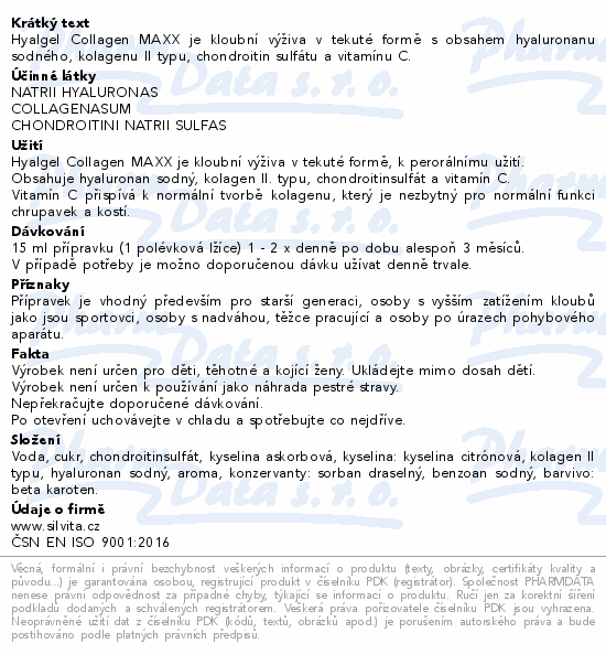 Hyalgel Collagen MAXX je kloubní výživa v tekuté formě s obsahem hyaluronanu sodného, kolagenu II typu, chondroitin sulfátu a vitamínu C.