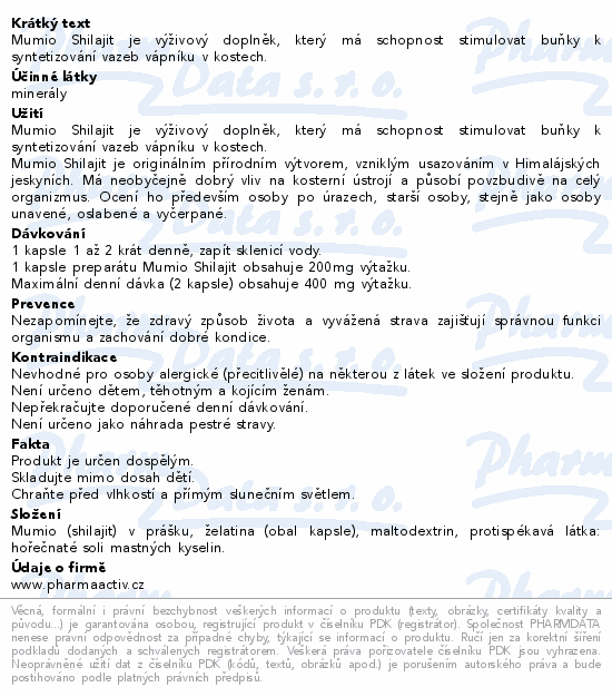 Mumio Shilajit je výživový doplněk, který má schopnost stimulovat buňky k syntetizování vazeb vápníku v kostech.