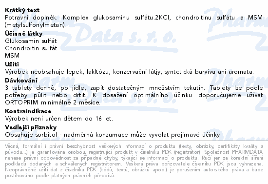 Potravní doplněk. Komplex glukosaminu sulfátu.2KCl, chondroitinu sulfátu a MSM (metylsulfonylmetan).