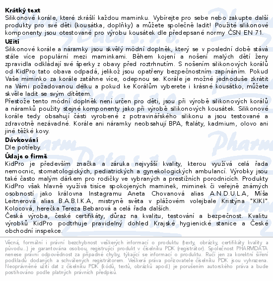 Silikonové korále, které zkrášlí každou maminku. Vybírejte pro sebe nebo zakupte další produkty pro své děti (kousátka, doplňky) a můžete společně ladit! Použité silikonové komponenty jsou otestované pro výrobu kousátek dle předepsané normy ČSN EN 71.