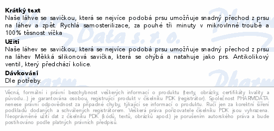 Naše láhve se savičkou, která se nejvíce podobá prsu umožňuje snadný přechod z prsu na láhev a zpět. Rychlá samosterilizace, za pouhé tři minuty v mikrovlnné troubě a 100% těsnost víčka