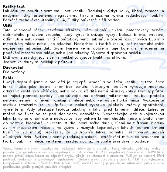 Lahvičku lze použít s ventilem i bez ventilu. Redukuje výskyt koliky, říhání, zvracení a nadýmání díky sníženému negativnímu tlaku a nižšímu vzniku vzduchových bublin. Pomáhá zachovávat vitamíny C, A, E díky průkazně nižší oxidaci.
