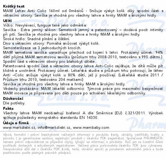 MAM Lahev Anti Colic 160ml od 0měsíců - Snižuje výskyt kolik díky spodní části s větracími otvory. Savička je vhodná pro všechny lahve a hrnky MAM s širokými hrdly.