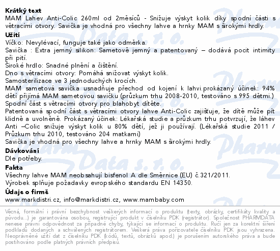 MAM Lahev Anti-Colic 260ml od 2měsíců - Snižuje výskyt kolik díky spodní části s větracími otvory. Savička je vhodná pro všechny lahve a hrnky MAM s širokými hrdly.