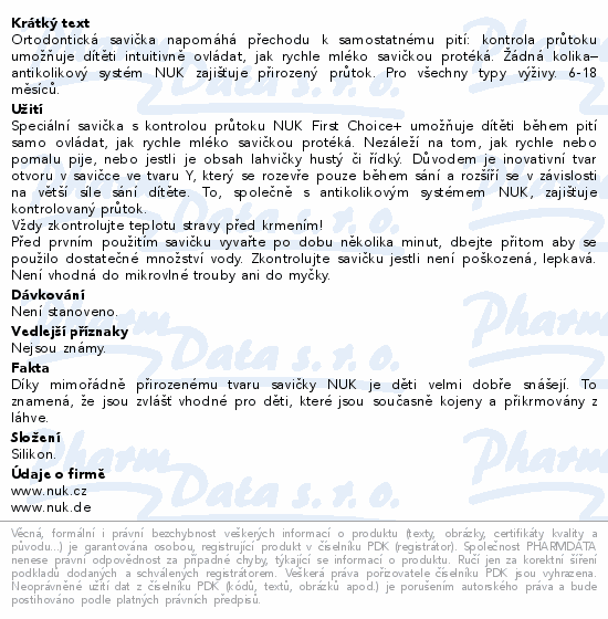 Ortodontická savička napomáhá přechodu k samostatnému pití: kontrola průtoku umožňuje dítěti intuitivně ovládat, jak rychle mléko savičkou protéká. Žádná kolika– antikolikový systém NUK zajišťuje přirozený průtok. Pro všechny typy výživy. 6-18 měsíců.