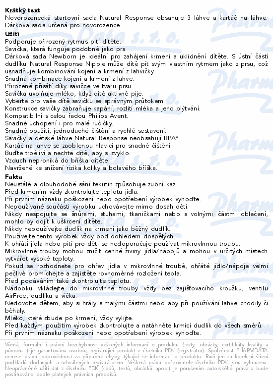 Novorozenecká startovní sada Natural Response obsahuje 3 láhve a kartáč na láhve. Dárková sada určená pro novorozence.