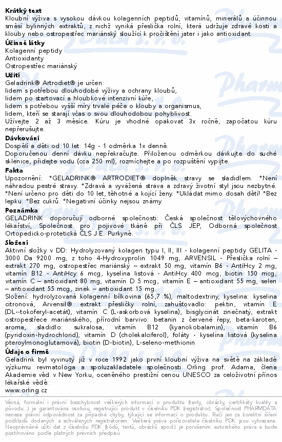 Kolagenní výživa kostí a chrupavek kloubů s antioxidanty a vitamíny AntiHcy. Geladrink Artrodiet je zdrojem látek s nutričním a fyziologickým účinkem doplňujícím běžnou stravu a lze jej užívat ke speciální a obohacené výživě kostí a chrupavek kloubů.