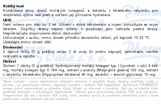 Kombinace dvou druhů mořských kolagenů a extraktu z tibetského rakytníku pro dokonalou výživu vaší pleti a udržení její přirozené hydratace.