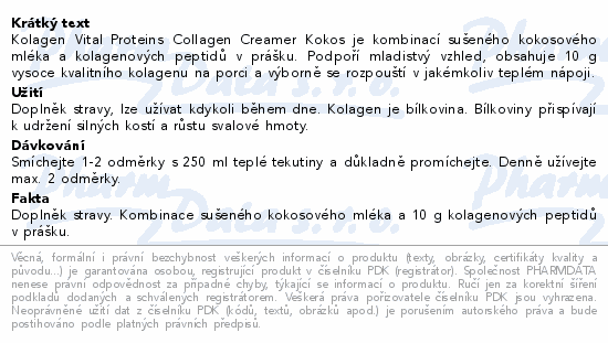 Kolagen Vital Proteins Collagen Creamer Kokos je kombinací sušeného kokosového mléka a kolagenových peptidů v prášku. Podpoří mladistvý vzhled, obsahuje 10 g vysoce kvalitního kolagenu na porci a výborně se rozpouští v jakémkoliv teplém nápoji.